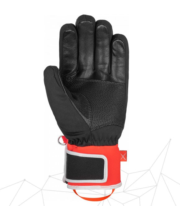 This waterproof racing glove offers a smart material mix of goatskin leather on palm and softshell on backhand and paddings on knuckle and fingers.